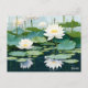 des fleurs de lotus fleurissent au milieu des nénuphars. Ce nouveau style d'illustration présente des fleurs blanches et des feuilles de lotus bleu-vert contre un arrière - plan blanc. Carte postale élégante, simple et fleurie.