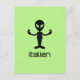 Italien alien italien drôle de mot carte postale avec un alien et un drôle de slogan punny : "Italien". Une carte de fan amusante unique pour les geeks italiens de science-fiction et les fans italiens.