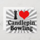 Est-ce que vous ou quelqu'un que vous connaissez aime le bol à bougies. Montrez-le par ce grand j'aime produit Candlepin Bowling. Idéal pour tous les fans de bowling à bougies. Vous trouverez également dans notre magasin des cadeaux de quilles à bougies, des chemises de quilles à bougies et des souvenirs de quilles à bougies.
