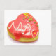 Un beigne en forme de coeur recouvert d'un vernis rose profond et parsemé de confettis jaunes et verts. Photo : Bonita Suraputra
