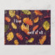 Une photo d'un arrangement de feuilles et de baies d'automne et une citation "J'aime la chute surtout"