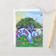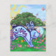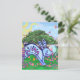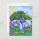 Jardin Easter Egg Hunt Carte postale avec notre oeuvre amusante et colorée d'un lapin lapin bleu à l'américaine, sautant parmi les oeufs de Pâques décorés cachés dans une cour herbeuse avec un éparpillement de fleurs, un mur de briques, et un ciel ensoleillé au printemps est une excellente façon d'envoyer vos voeux de vacances pour Pâques. Ce printemps ludique a été numériquement par Traci Van Wagoner, illustrateur de livres pour enfants, et est parfait pour tous ceux qui aiment les lapins, les lapins, les oeufs de Pâques, les oeufs décoratifs, Pâques, le printemps et les oeuvres d'art colorées. Le printemps est né. Pâques joyeuses !
