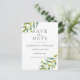 Cette élégante carte Save the Date présente un délicat feuillage vert aquarelle, encadrant vos détails personnalisés pour annoncer votre date spéciale. Conçu par Thisisnotme©