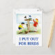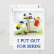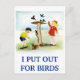 Une image fantaisiste d'enfants qui nourrissent les oiseaux, et même qui aiment la compagnie d'un écureuil affamé. La légende dit que je mets dehors pour les OISEAUX. Une carte mignonne pour les amateurs d'oiseaux qui sortent.