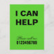Je peux aider Neighborhood Assistance SOS message d'aide, communiquer avec d'autres leur envoyer cette carte postale pour leur faire savoir que vous pouvez aider, Bright Green Postcard, vous pouvez changer ou supprimer tout le texte arrière et vous pouvez ajouter votre numéro de téléphone sur le côté avant.