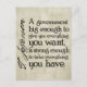Un gouvernement assez grand pour vous donner tout ce que vous voulez, est assez fort pour prendre tout ce que vous avez.