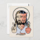 Photo de Jésus et Satan partageant la même tête, avec respectivement un signe de paix et un doigt central. Et un halo qui est un serpent de l'autre côté. T-shirts et échange cadeau de nouveauté.