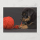 le rottweiler 1,5 mois de chiot joue avec la boule rouge de fil
