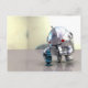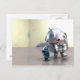 Un énorme robot métalique s'enfonce derrière un petit robot à vent bleu