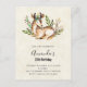 Invitation à la carte postale d'anniversaire avec un joli cerf posé au milieu de la flore verdoyante. Style Boho rustique.
