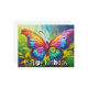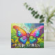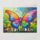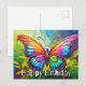Cette carte postale unique présente une illustration d'un papillon coloré flottant. Cette carte d'anniversaire serait vraiment merveilleuse pour les amis, la famille et les collègues.