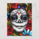 Fête florale vibrante de l'image morte. De riches fleurs aux tons bijoux entourent le visage d'une femme peint pour la fête mexicaine des morts. Prenez le temps de sentir les roses, et d'envoyer une belle carte postale...