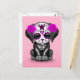 Carte Postale Jour mignon violet du chien chiot mort rose