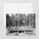 Cette carte postale présente une photo vintage de plusieurs bûcherons anciens, rugueux et agités debout sur un gros bûcher géant.