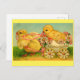 Carte postale vintage de Pâques avec deux adorables poussins joyeux.