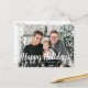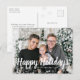 Carte postale de neige de Joyeuses fêtes. Cette carte postale unique et fantaisiste de fête présente un cadre festif superposé de flocons de neige blancs avec un texte blanc pour personnaliser une photo de famille personnalisable. Trouvez les articles correspondants dans la collection Flambeaux de Noël.
