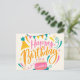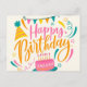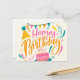 Arrière - plan Anniversaire Joyeux anniversaire fête Typographie de gâteau Célébration Joyeux Balloons Confetti Célébrer la calligraphie Lettrer Festive Colorful Salutation