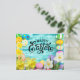 Bonne Pâques avec oeuf et lapin avec fleurs Carte postale