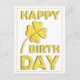 Carte Postale Joyeux anniversaire en or avec trèfle à 4 feuilles
