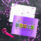 Conception unique de carte de voeux d'anniversaire personnalisée avec le texte JOYEUX écrit dans une typographie 3D gonflée associée à un script manuscrit entièrement personnalisable et des étincelles de couleurs assorties sur un fond métallisé violet.