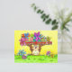 Une petite chouette mignonne et extatique, dessinée dans un style cartoon, se tient debout sur de l'herbe verte vibrante. Elle tient une pile entière de cadeaux au-dessus de sa tête et sourit. Les cadeaux sont de différentes formes et tailles, et sont tous emballés dans du papier coloré en bleu, rouge, rose, jaune, orange, vert et violet. Certains sont rayés, d'autres ont des motifs à pois. Il y a davantage de cadeaux et un bouquet de fleurs roses sur l'herbe autour de la chouette. Le fond est jaune.