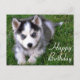 Aww...Qui peut résister au visage mignon d'un chiot sibérien Husky ? Cette joyeuse carte de poste de voeux d'anniversaire comporte un chiot sibérien Husky reposant dans la haute herbe verte. Les cartes postales Joyeuses Anniversaires sont l'alternative économique aux cartes de voeux lorsque vous voulez envoyer une note rapide. D'autres cadeaux et produits pour chiens que vous pouvez aimer... noir, anniversaire, joyeux anniversaire, husky sibérien, chiot sibérien, chiots sibériens, chiot sibérien, chiot sibérien, chiot husky, chiot husky, pup husky, huskies sibériens, chien de traîneau, carte d'anniversaire, carte postale pour chien