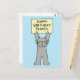 Dessin d'un chat gris moelleux tenant une pancarte couleur citron qui dit "Joyeux Travis d'anniversaire".
