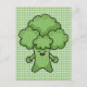 Cute green cartoon broccoli with adorable happy face. Les Background, c'est vert et blanc gingham.