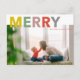 Cette carte postale de vacances photo présente le MERRY multicolore sur le dessus. Vous pouvez remplacer l'image de l'espace réservé par votre propre photo de vacances.