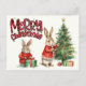 Un Joyeux Joyeux Noël Coloré De Noël Accueil Carte Postale Design Avec Des Lapins Décorant L'Arbre Et Enveloppant Les Cadeaux