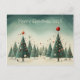 Joyeuse carte postale de Noël avec arbres de Noël, minimaliste, ornements et art lunatique arrière - plan d'hiver. Personnalisez-la en utilisant "Personnalisez ce modèle" ou en utilisant la fonction Modifier.