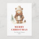 Cette carte postale de vacances confortable présente une aquarelle illustrant un ours brun mignon. Les mots "MERRY CHRISTMAS" apparaissent dans des lettres serif rouge rond qui se coordonnent avec l'art. Ajoutez le nom de votre famille et l'année à l'avant en italique gris fusain, et votre adresse de retour et un bref message au verso.
