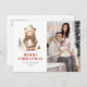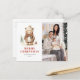 Cette carte postale rustique et confortable présente une aquarelle illustrant un ours brun mignon vêtu de vêtements d'hiver. Les mots "MERRY CHRISTMAS" apparaissent en lettres rouges serif qui se coordonnent avec l'art. Personnalisez-le avec le nom de votre famille et l'année sur le devant en italique gris charbon, avec une photo verticale de vacances familiales. Ajoutez votre adresse de retour et un bref message au verso.