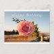 Joyeux anniversaire, que votre journée soit aussi belle que vous. Rose auf Geländer mit Himmel im Hintergrund.