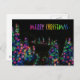 Une aquarelle numérique et lumineuse, composée d'arbres de Noël décorés, illuminés la nuit.