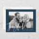 Souhaitez à vos amis et à votre famille de passer de bonnes vacances avec nos cartes postales Joyful Script. La carte postale moderne de vacances présente le mot Joyful dans une superposition de script blanc, en lettres et avec votre photo préférée encadrée en marine. Personnalisez la carte postale en ajoutant vos noms, votre adresse de retour et un message d'accueil personnalisé.