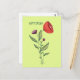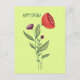 Carte postale aux fleurs printanières avec une ligne art de fleurs abstraites jolies simples en vert, violet et corail rouge couleurs et le texte personnalisable "Happy Spring!".