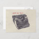 ce design de carte postale de The Poetry Store comporte une machine à écrire en bois et le message : juste mon type