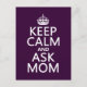 Ceci dit Keep Calm and Ask Mom, dans le style de l'affiche classique garder calme. C'est un excellent conseil en cas de calamité ou d'urgence. Cette conception est populaire auprès de tous et fait de grands cadeaux et des cartes pour la mère dimanche, ou à tout moment de l'année. Vous pouvez changer la couleur de l'arrière - plan très facilement, il suffit d'appuyer sur la personnaliser. Si vous désirez d'autres changements - ou pour voir la conception d'un autre produit - ou si vous avez des questions, s'il vous plaît contactez-moi par mon magasin et je vous aiderai de toutes les façons possibles. Merci beaucoup d'avoir cherché.