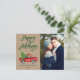 Kraft Green Brush Script Aquarelle Vintage Camion rouge avec arbre de Noël - Joyeuses vacances Couple Photo Carte postale