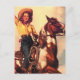 Illustrations vintages aux couleurs riches d'une jolie cowgirl sur son poney tacheté