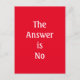 La réponse est Pas de conception de typographie. Lettre blanche sur un arrière - plan rouge. Envoyez ce message à n'importe qui pour répondre à leur question ! Mettez-le sur votre bureau et tenez-le quand votre patron vous parle ! Personnalisez facilement cette carte en modifiant le texte modèle à un message de votre choix.
