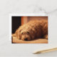 Un Labradoodle qui regarde la caméra avec une triste expression sur le visage.