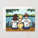 Sweet Yellow Labrador et maman (avec cheveux longs) et papa design. Le magnifique Yellow Lab et ses parents humains se reposent au lac. Qu'est-ce qu'ils bavardent ? ? ? Vous pouvez customiser du texte comme vous le souhaitez. De beaux cadeaux pour les amoureux de les chiens qui aiment le Labrador jaune! Créé par Naomi Ochiai.