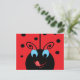 Cette adorable dame bestiole avec une jolie antenne tourbillonnant, de grands yeux bleus et des pois noirs sur ses ailes rouges lèche ses lèvres souriantes dans une impatiente anticipation du jour.