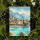 Cette carte postale présente un portrait aquarelle du lac Léman en Suisse