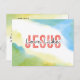 La carte postale représente un arrière - plan d'aquarelle abstrait moderne aux tons bleu et vert. Il présente une puissante citation chrétienne inspirante, "L'amour comme Jésus." Le dos présente la Bible Verse Jean 15:12, "Aimez-vous les uns les autres comme je vous ai aimés." La salutation, la prière peut être personnalisée ou supprimé pour un message manuscrit.