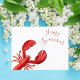 Thème nautique, été et mer. Un homard rouge sur un arrière - plan blanc. Script de style en lettres rouges et texte : Happy Summer!