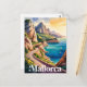 Découvrez le charme artistique du littoral de Majorque avec cette carte postale magnifiquement conçue. Décoré de couleurs vives et de formes dynamiques inspirées des superbes plages de l'île, des eaux turquoise et des falaises escarpées, cet article saisit l'essence de la beauté méditerranéenne. Parfait pour les amateurs d'art, les voyageurs et les collectionneurs, c'est un hommage intemporel au charme pittoresque de Majorque.