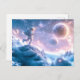 Illustration numérique d'un astronaute sur un monde alien qui saute d'une région à l'autre en faible gravité.